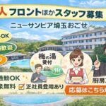 2026年2月22日 / 最終更新日 : 2026年3月9日 matsuzaka01 NEWS 【求人】フロントほかスタッフ募集(A/P・正社員あり) 【求人】フロントほかスタッフ募集|ニューサンピア埼玉おごせ(A/P・正社員あり) ニューサンピア埼玉おごせでは、ホテルフロント受付スタッフを中心に、スタッフを募集しています。自然に囲まれた温泉リゾートで、お客様の“旅のス […]