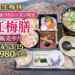 2026年2月8日 / 最終更新日 : 2026年2月8日 matsuzaka01 NEWS 越生梅林の季節限定「紅梅膳」販売のご案内(2/14~3/15) 関東屈指の梅の名所「越生梅林」の見頃に合わせ、ニューサンピア埼玉おごせ内 レストラン紅梅 では、季節限定メニュー 「紅梅膳」 をご用意いたしました。梅の香りに包まれるこの時期ならではの味わいを、落ち着いた空間でゆったりと […]