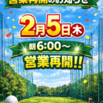 2026年1月30日 / 最終更新日 : 2026年1月30日 matsuzaka01 NEWS 【お知らせ】ゴルフ練習場 営業再開2月限定キャンペーンのご案内 平素よりニューサンピア埼玉おごせをご利用いただき、誠にありがとうございます。 2026年1月11日(日)の強風の影響により、当館ゴルフ練習場の防球ネットが一部破損したため、安全確保の観点から一時的にご利用を停止しておりま […]